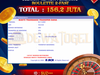 DEWATOGEL JACKPOT LIVE CASINO DI ROULETTE 2-FAST Rp 156.200.000,- LUNAS