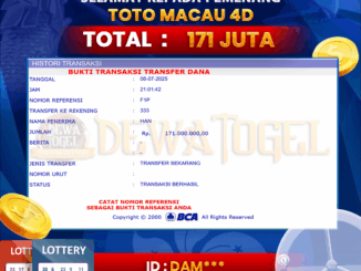 DEWATOGEL JACKPOT TOGEL DI TOTO MACAU 4D Rp 133.000.000,- LUNAS
