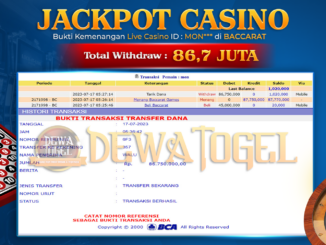DEWATOGEL JACKPOT LIVE CASINO BACCARAT Rp 86.700.000,- LUNAS